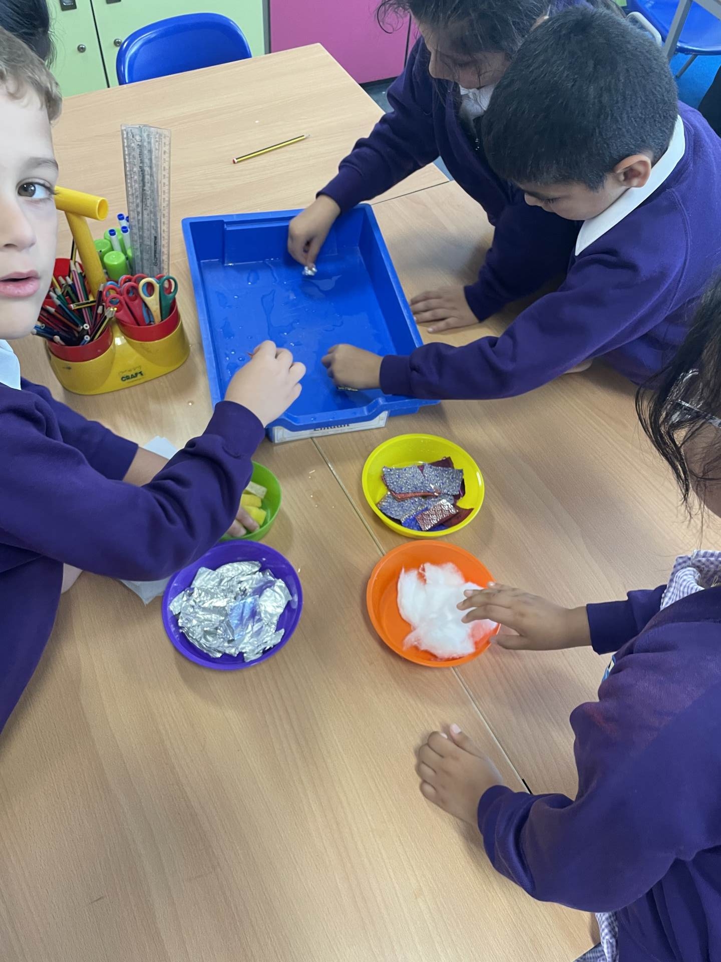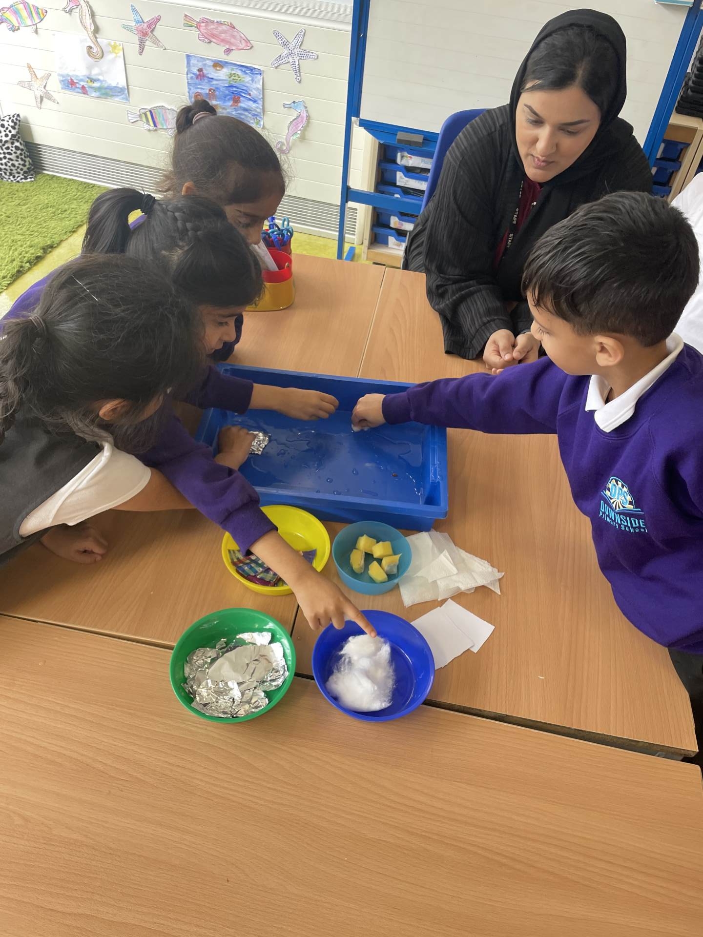 We explored materials and tested if they were absorbent or not.